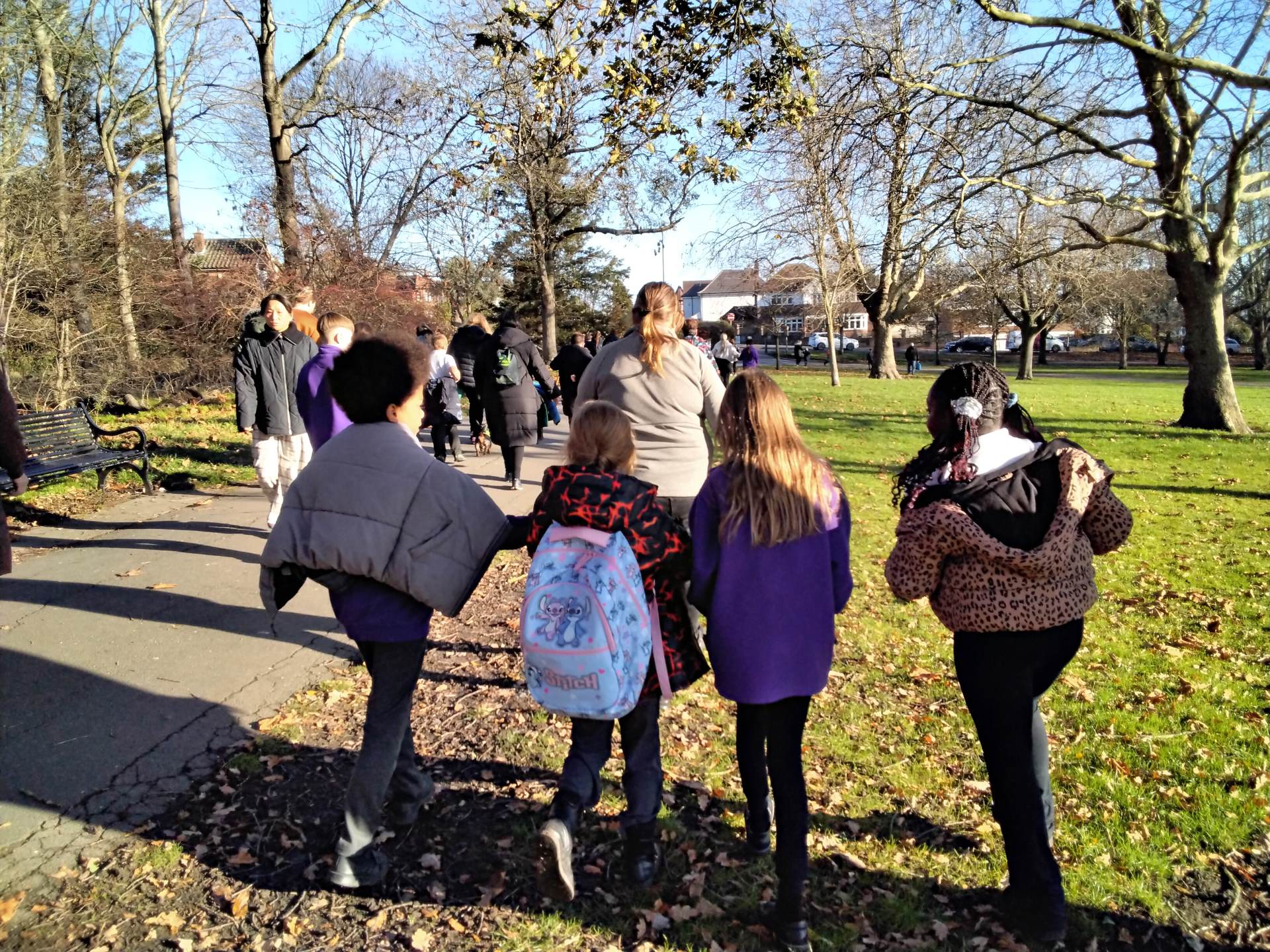 There were more than 140 of us, children, parents, carers, siblings, friends, staff, dogs and buggies on our walk around Danson Park in the winter sunshine. We ended our walk with some time in the playground with our friends as a reward!